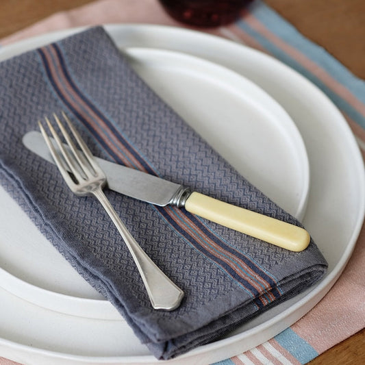 Set of 4 - Provincial Napkins - Natural / French Navy